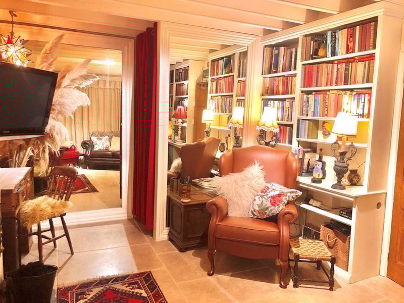 Enjoy good food and conversation in the well-equipped, vintage galley kitchen or settle down before the inviting log/smokeless fuel burning stove in leather library chairs and choose from the varied selection of books that line the walls. Upstairs the ‘granny chic’ style continues with two irresistible bedrooms with comfortable beds (one king, one double), antique linens and bohemian furnishings. USB sockets are conveniently positioned by the beds and a cosy night is promised with electric blankets.